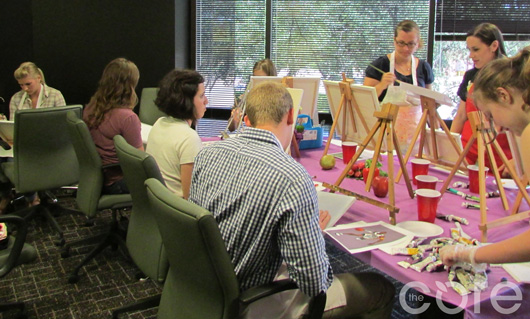 Kathy Mackey has been expressing herself through painting for many years. With this talented artist among us, we organized our very own art-filled afternoon to team build and create. Though there was no wine at our in-office, mid-afternoon retreat, there was no shortage of creative inspiration. Our wide variety of personalities resulted in an incredibly diverse range of muses and masterpieces. And the finished products were an impressive collection to say the least!