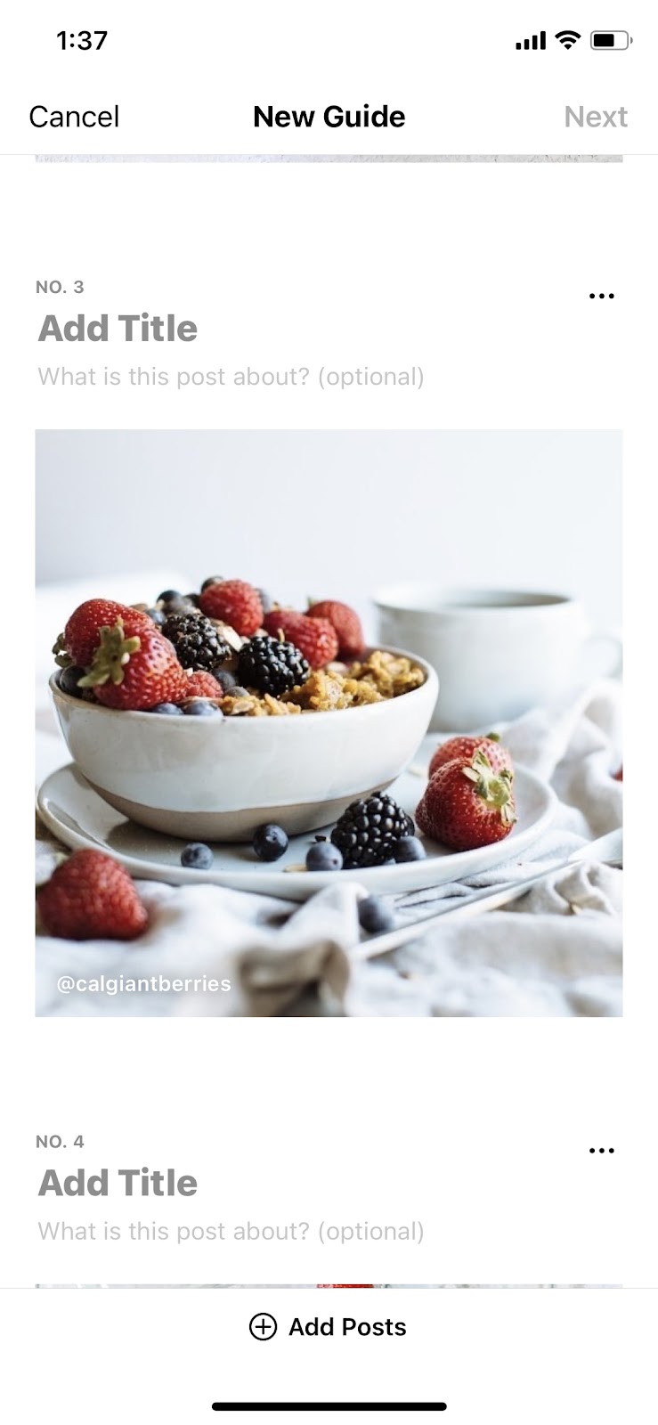 When you select “Posts” you will be able to select any previous post you’ve shared to add it to your Guide!
