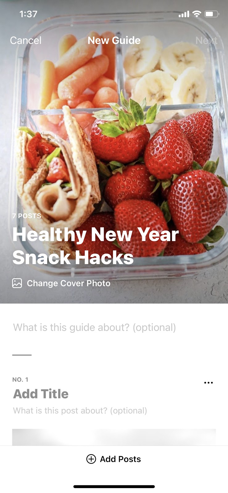 For example, if you want to create a Guide on “Healthy New Year Snack Hacks”, you can go through your previous posts and select the images that you would like to feature. Then you can go back and add in details to each image like a blog post!